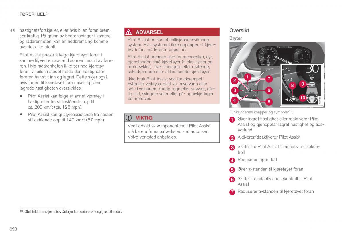 Volvo-verksted anbefales. Aktiverer/deaktiverer Pilot Assist