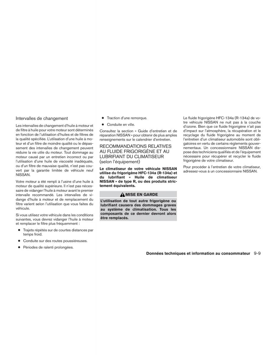 sement des intervalles de changement peuventAUFLUIDEFRIGORIGÈNEETAUnementaux. Un concessionnaire NISSAN dis-