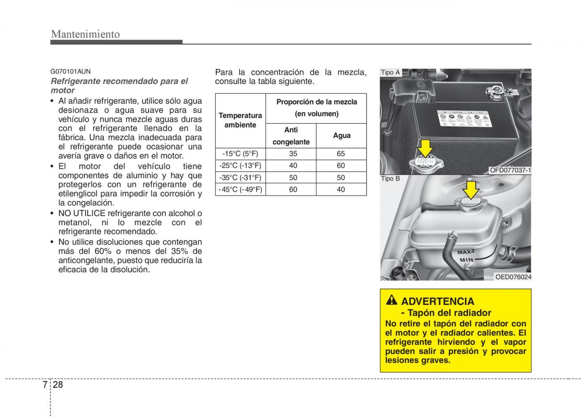 • Al añadir refrigerante, utilice sólo agua Proporción de la mezcla