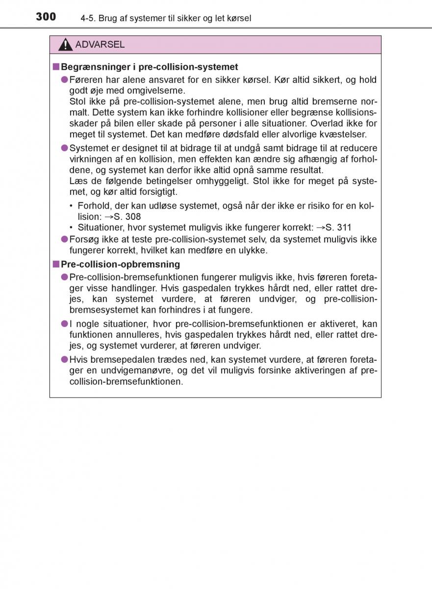 lPre-collision-bremsefunktionen fungerer muligvis ikke, hvis føreren foreta-