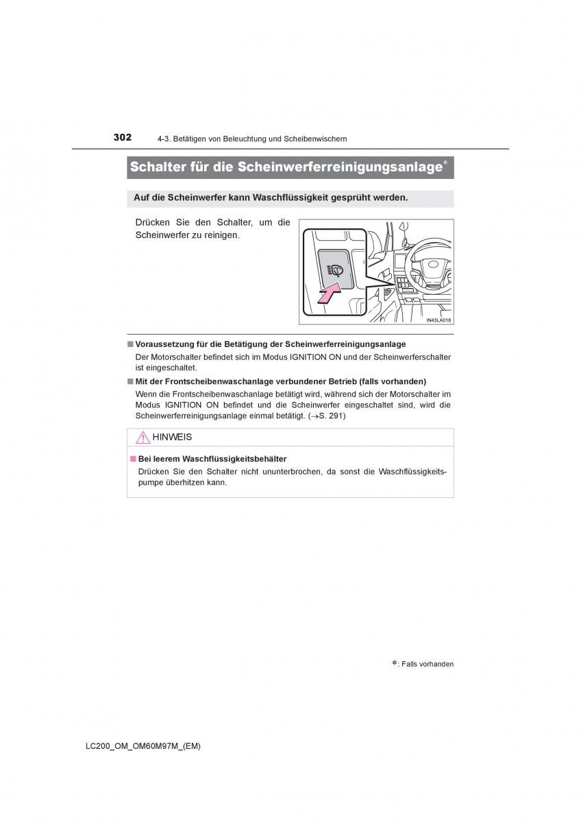 ■Voraussetzung für die Betätigung der Scheinwerferreinigungsanlage