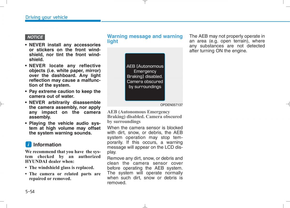 NOTICE Warning message and warning The AEB may not properly operate in