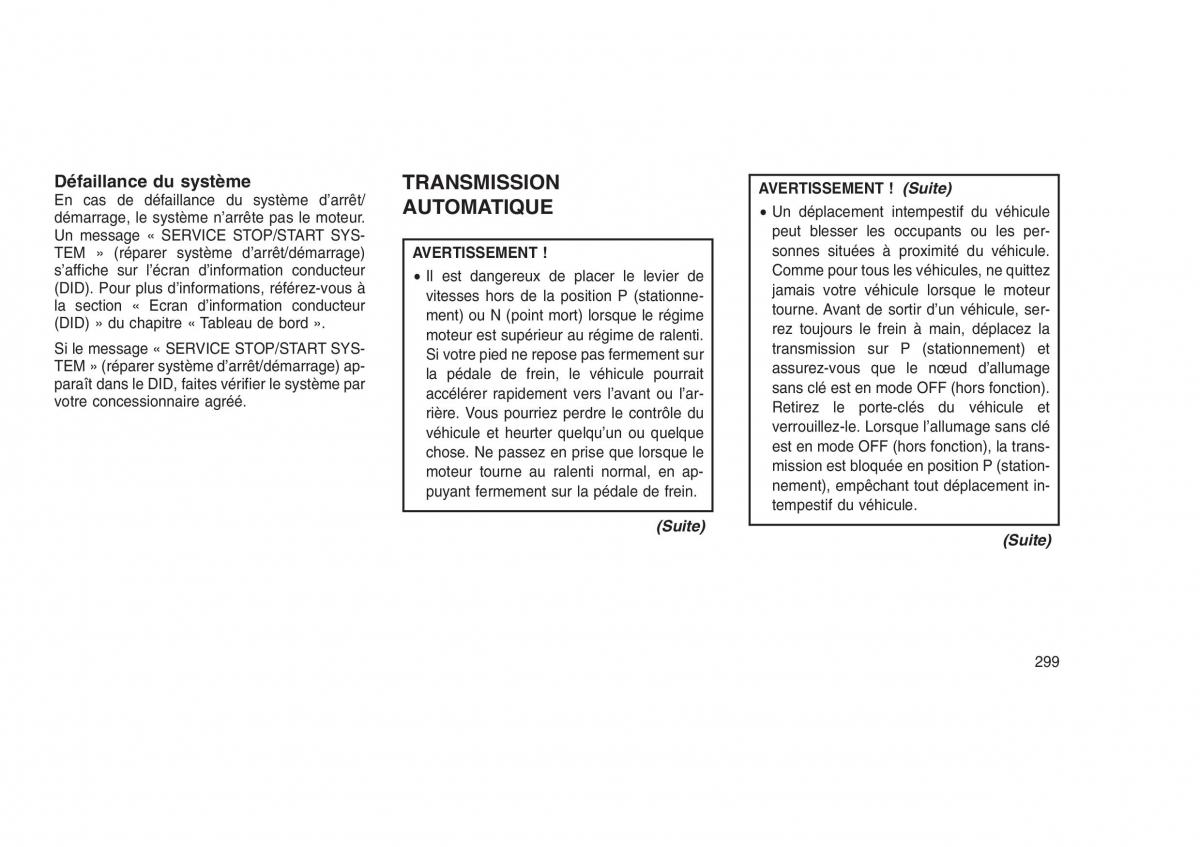 En cas de défaillance du système darrêt/AUTOMATIQUE •Un déplacement intempestif du véhicule