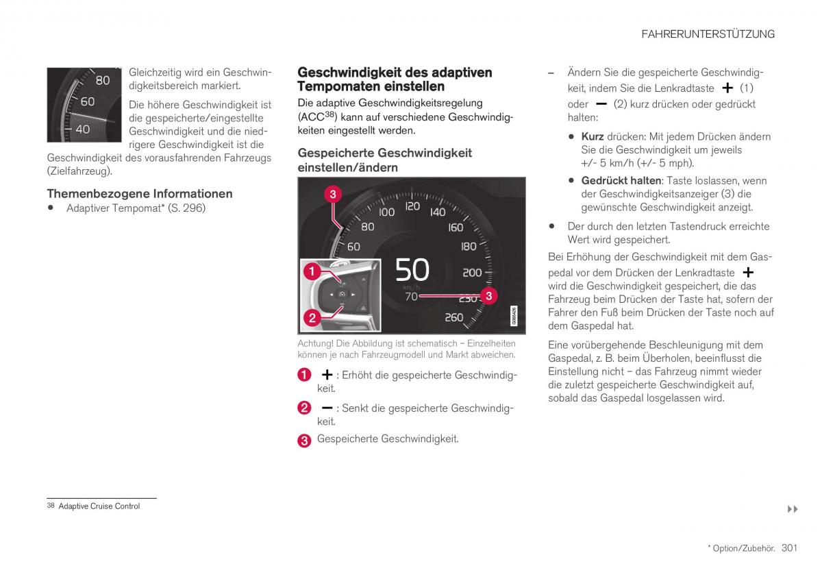die gespeicherte/eingestellte (ACC ) kann auf verschiedene Geschwindig- halten: