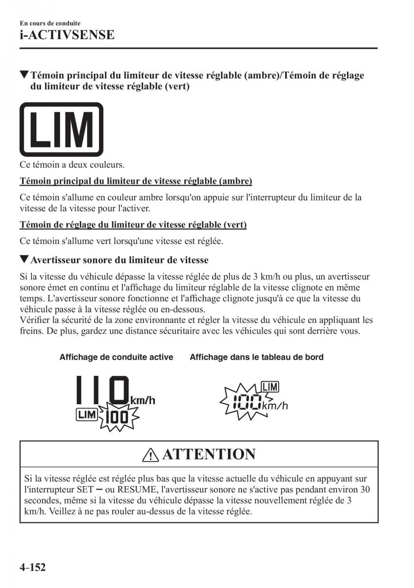 km/h. Veillez à ne pas rouler au-dessus de la vitesse réglée.