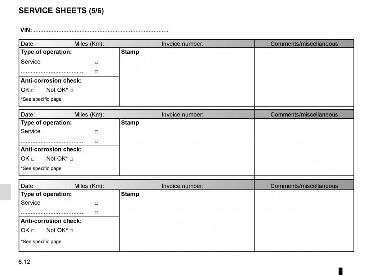 SERVICE SHEETS (5/6)