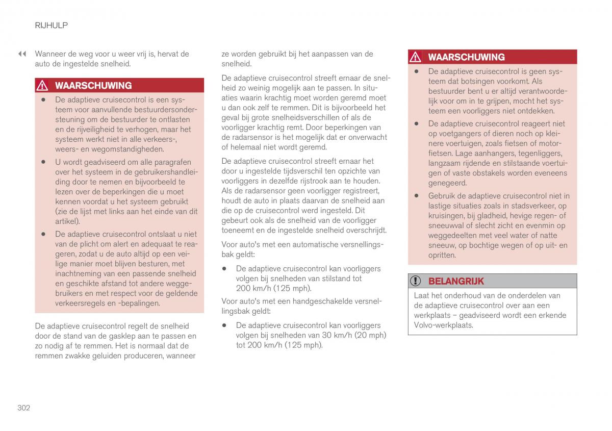 U wordt geadviseerd om alle paragrafenDe adaptieve cruisecontrol streeft ernaar het