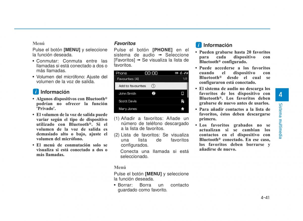• Conmutar : Conmuta entre las favoritos. Bluetooth configurado.