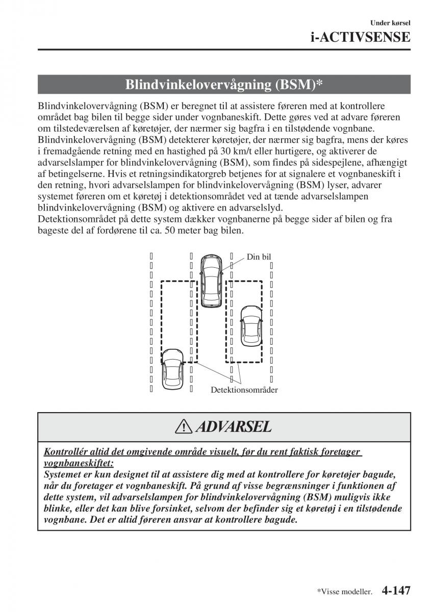 dette system, vil advarselslampen for blindvinkelovervågning (BSM) muligvis ikke