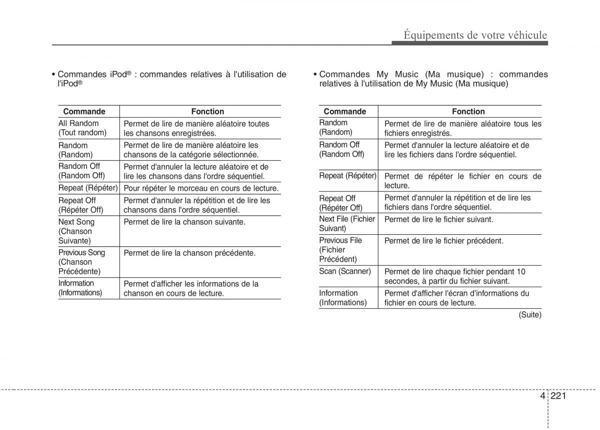 l'iPod® relatives à l'utilisation de My Music (Ma musique)