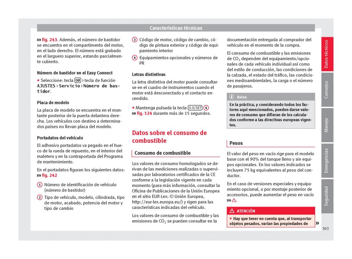 ››› fig. 243. Además, el número de bastidor3 Código de motor, código de cambio, có-documentación entregada al comprador del