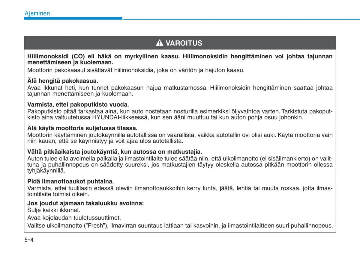 Avaa ikkunat heti, kun tunnet pakokaasun hajua matkustamossa. Hiilimonoksidin hengittäminen saattaa johtaa