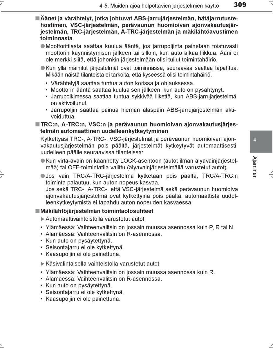 4-5. Muiden ajoa helpottavien järjestelmien käyttö309