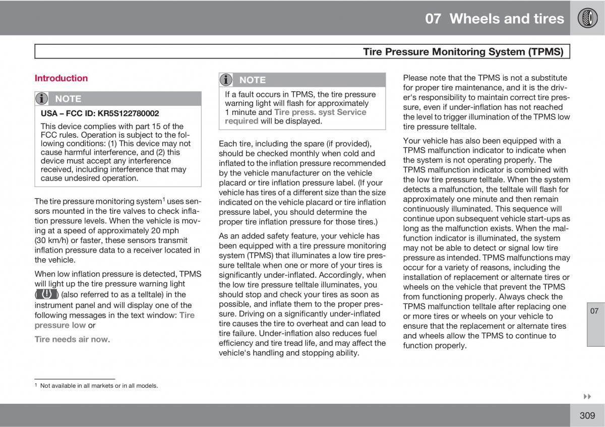 USA – FCC ID: KR5S122780002 1 minute and Tire press. syst Service sure, even if under-inflation has not reached