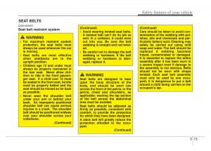Seat belt restraint system • Avoid wearing twisted seat belts.Care should be taken to avoid con-