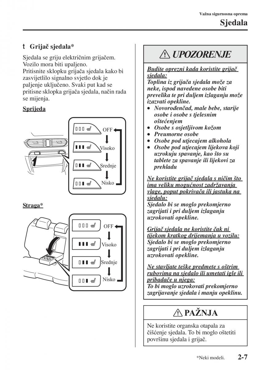 pritisne sklopka grija þ a sjedala, naþ in rada prevelika te pri duljem izlaganju može