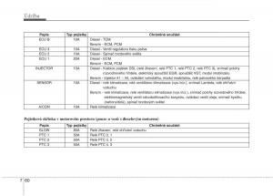 okno 20 A, repr. 25 A, DR LOCK 20 A, brzdová světla 15 A, páté dveře 15 A, přední mlhovky 15 A,