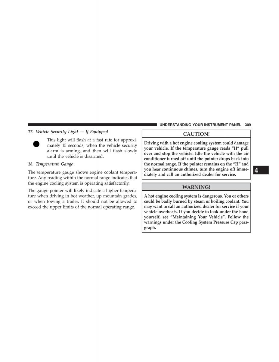 mately 15 seconds, when the vehicle securityyour vehicle. If the temperature gauge reads “H” pull