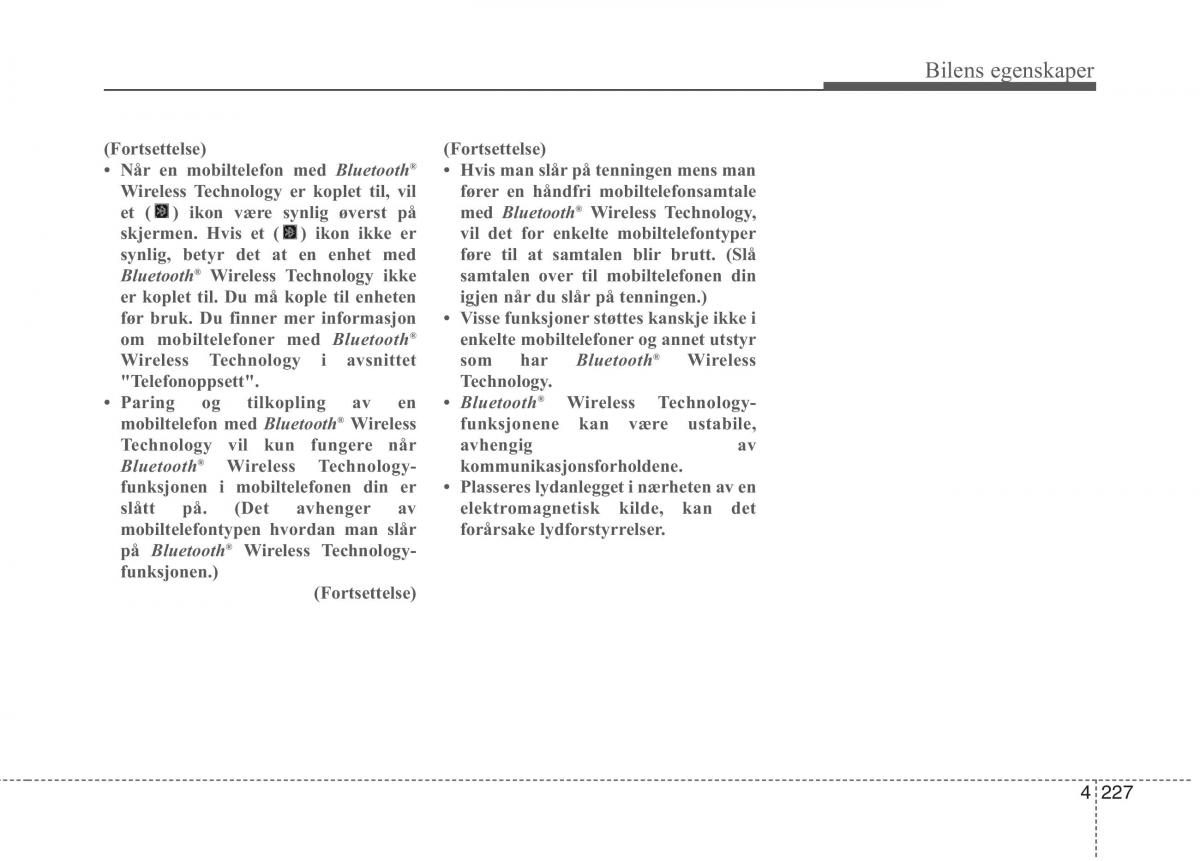 mobiltelefon med Bluetooth Wireless funksjonene kan være ustabile,