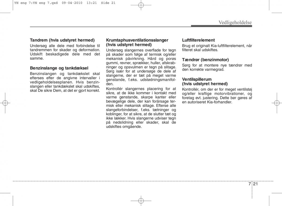 owners manual KIA Venga - year of production: 2009 - Kia Venga ejere handbog DK