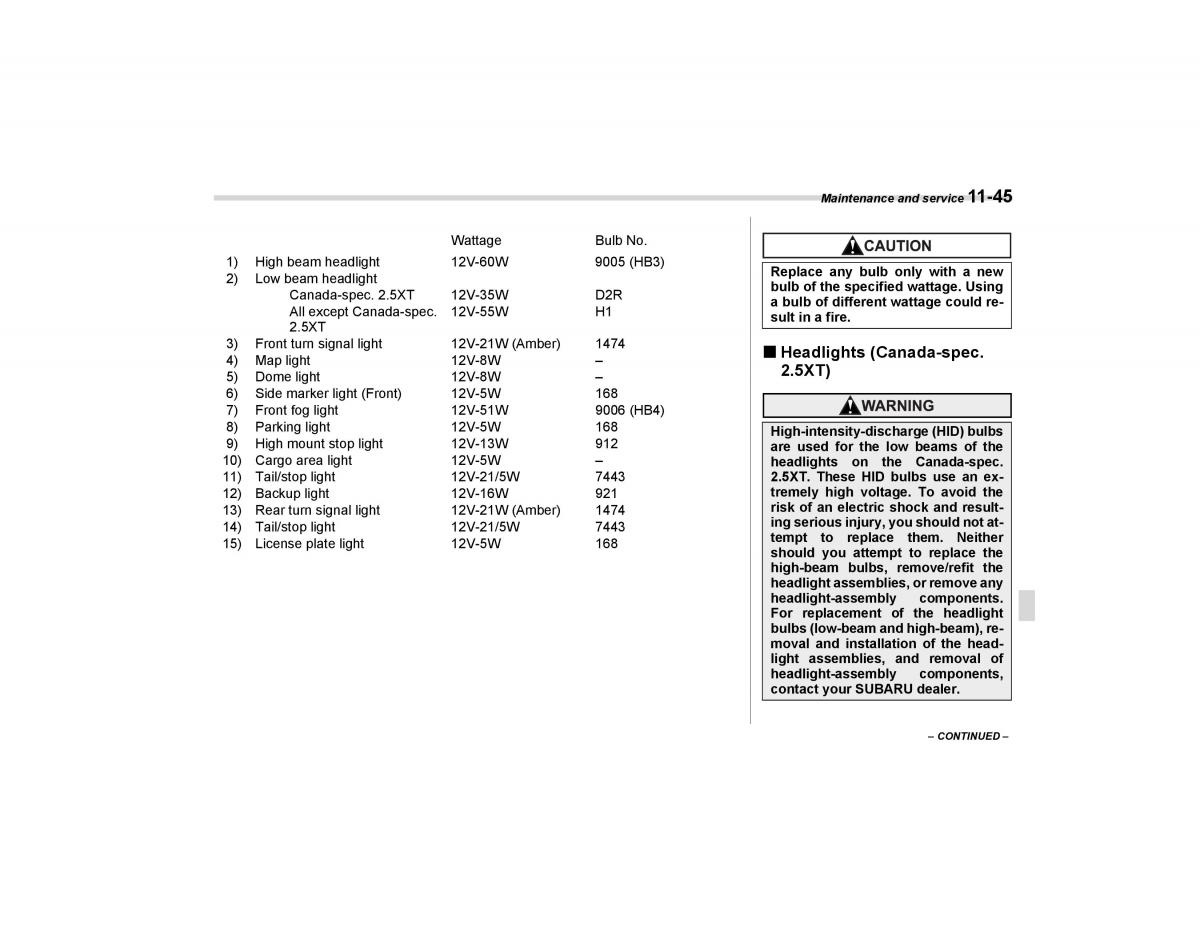Canada-spec. 2.5XT 12V-35W D2R a bulb of different wattage could re-