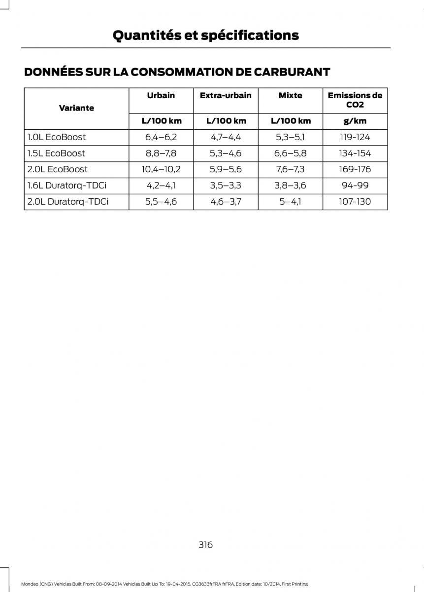 Mondeo (CNG) Vehicles Built From: 08-09-2014 Vehicles Built Up To: 19-04-2015, CG3633frFRA frFRA, Edition date: 10/2014, First Printing