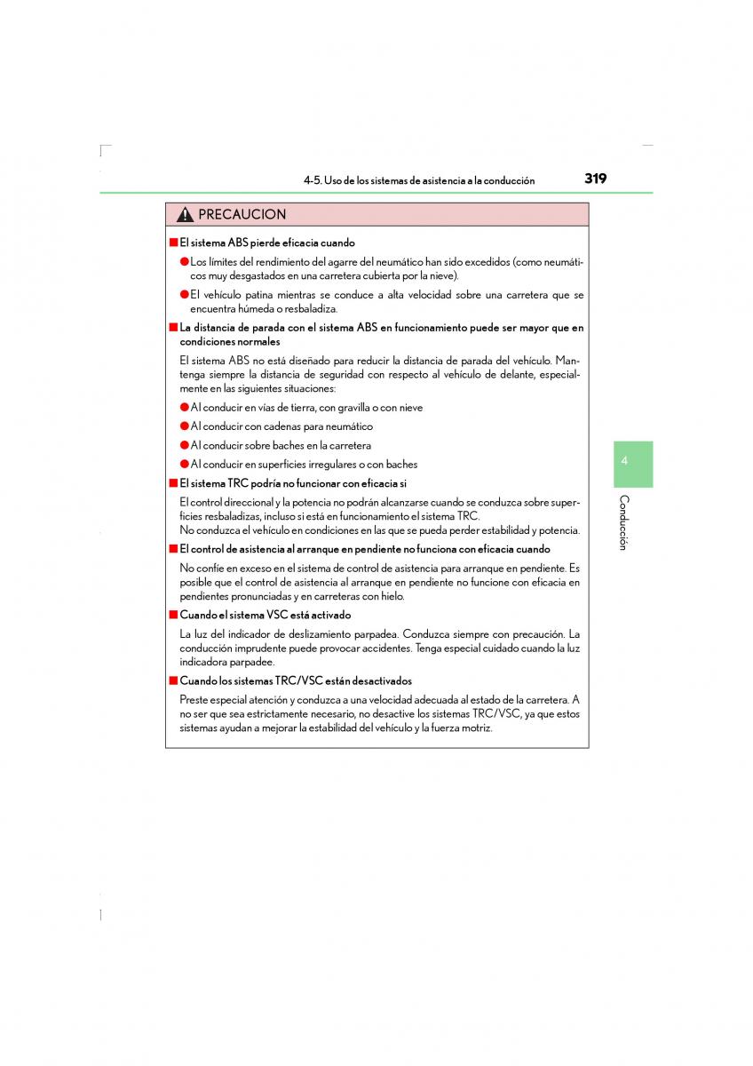 4-5. Uso de los sistemas de asistencia a la conducción319