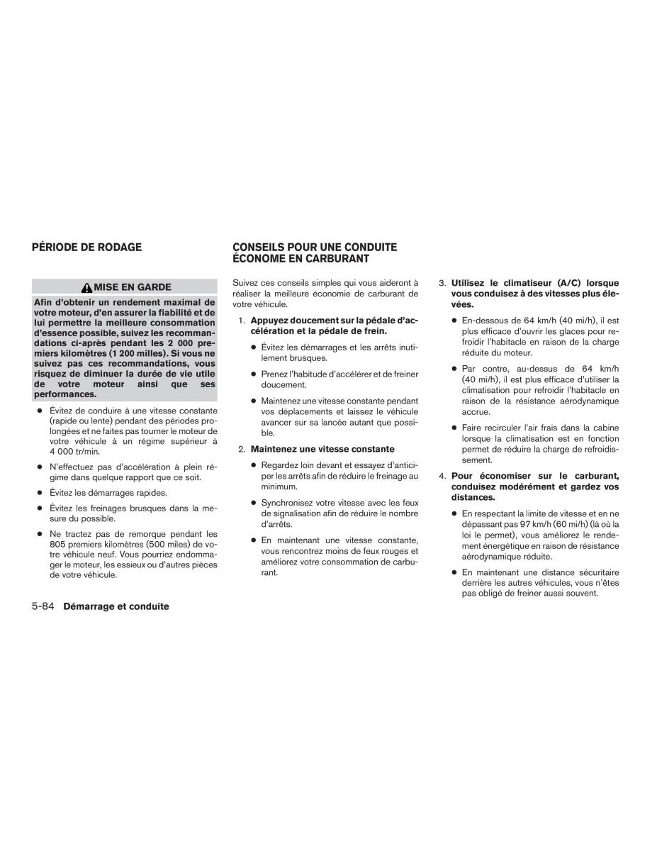 ● Évitez les démarrages rapides.minimum. conduisez modérément et gardez vos