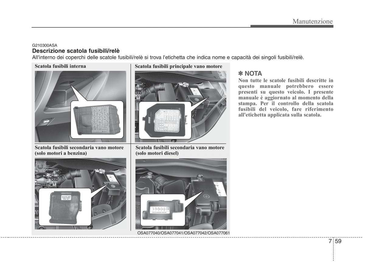 All'interno dei coperchi delle scatole fusibili/relè si trova l'etichetta che indica nome e capacità dei singoli fusibili/relè.
