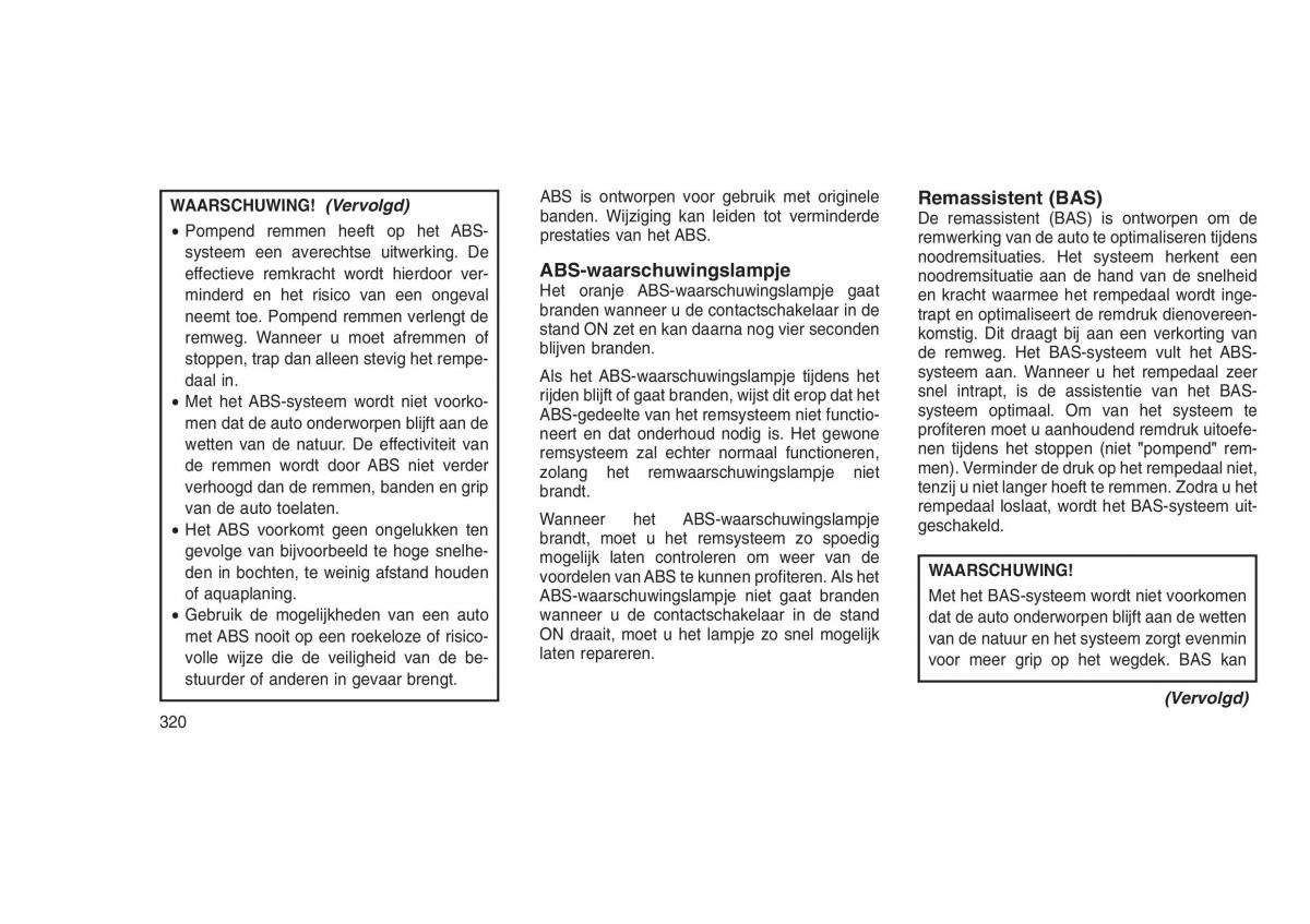 WAARSCHUWING! (Vervolgd)ABS is ontworpen voor gebruik met origineleRemassistent (BAS)