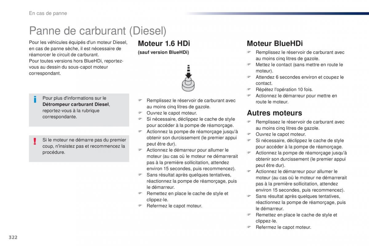 en cas de panne sèche, il est nécessaire de (sauf version BlueHDi)F Remplissez le réservoir de carburant avec