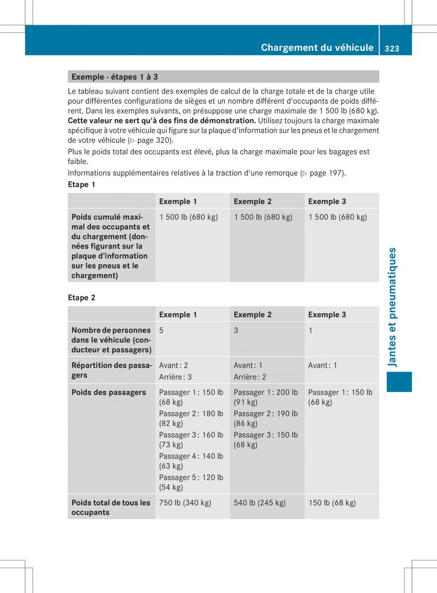 Le tableau suivan tc ontient des exemples de calcul de la charge totale et de la charge utile