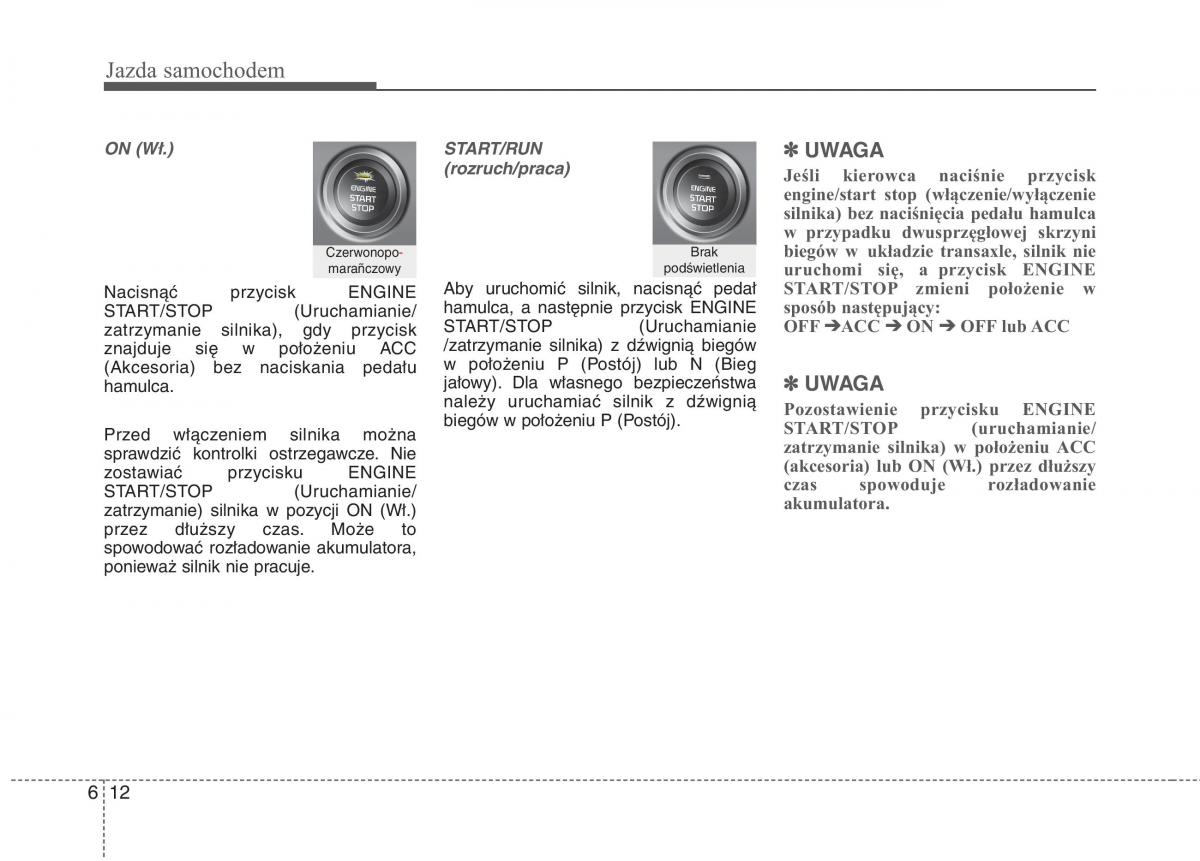 zatrzymanie) silnika w pozycji ON (Wł.) akumulatora.