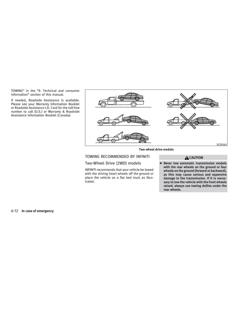 TOWING RECOMMENDED BY INFINITI CAUTION