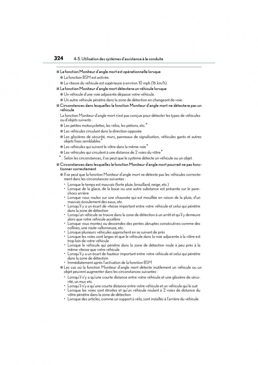 324 4-5. Utilisation des systèmes d’assistance à la conduite