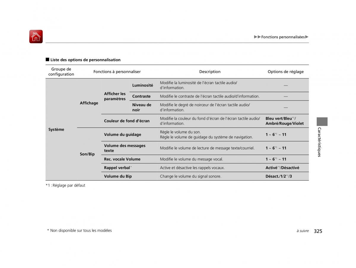Afficher les Contraste Modifie le contraste de l’écran tactile audio/d’information. —