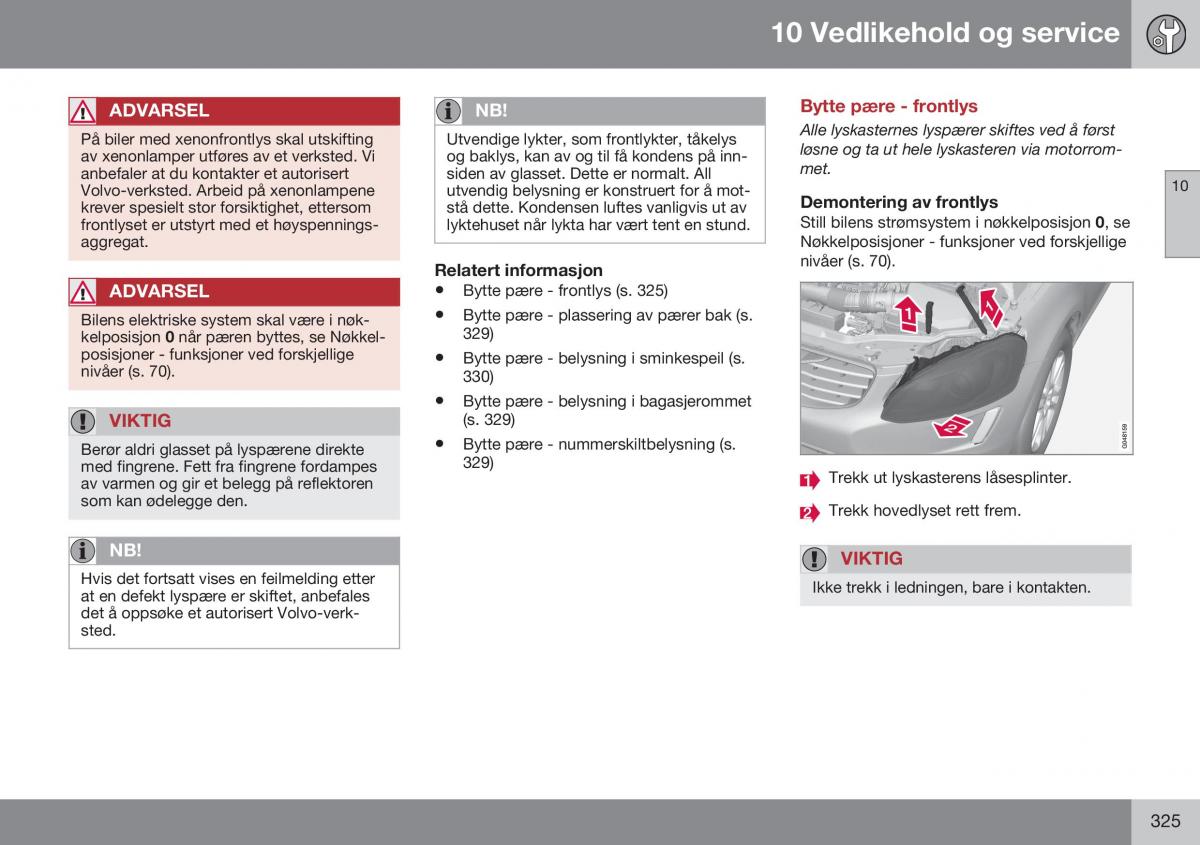 ADVARSEL • Bytte pære - frontlys (s. 325)