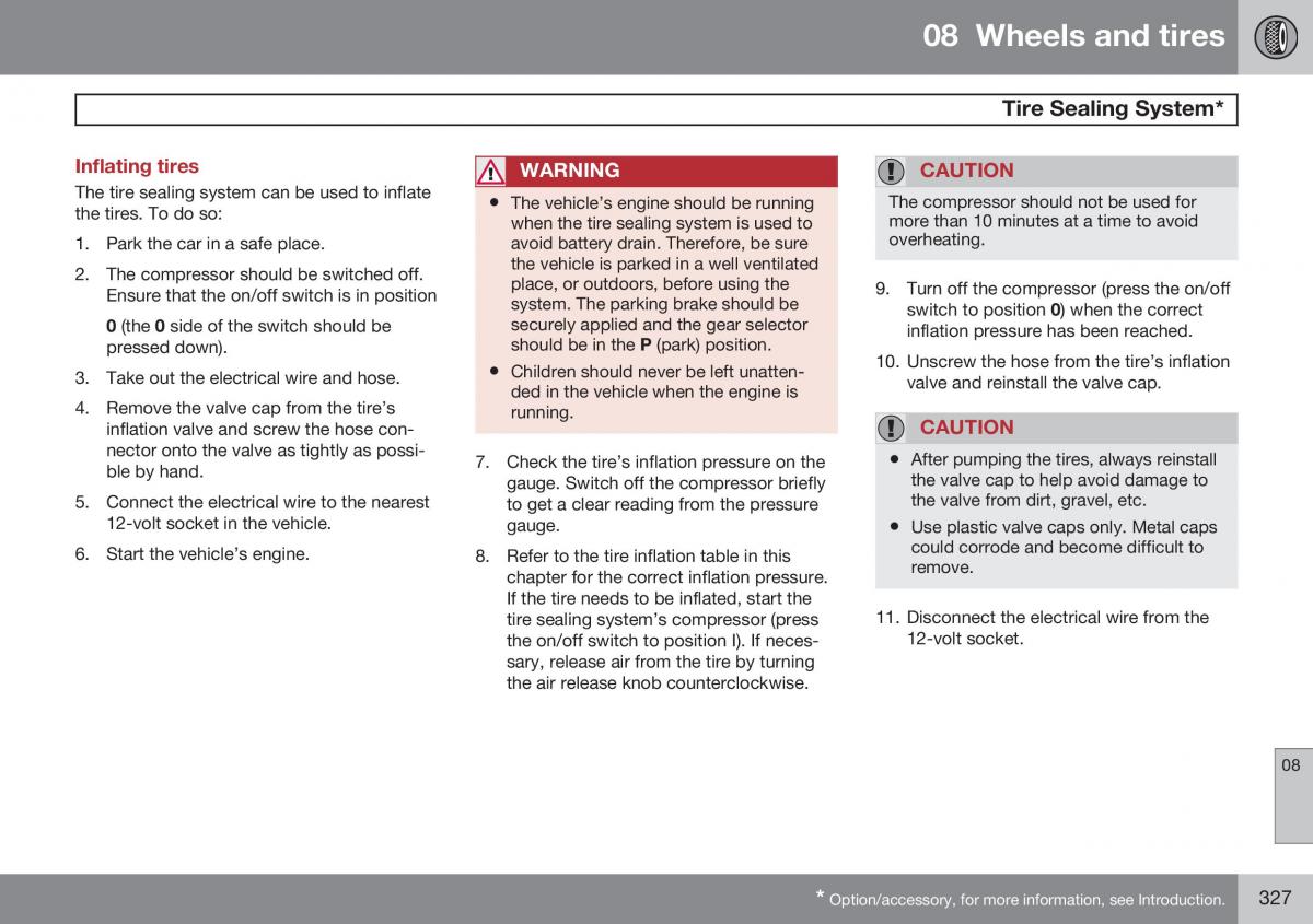 If the tire needs to be inflated, start the