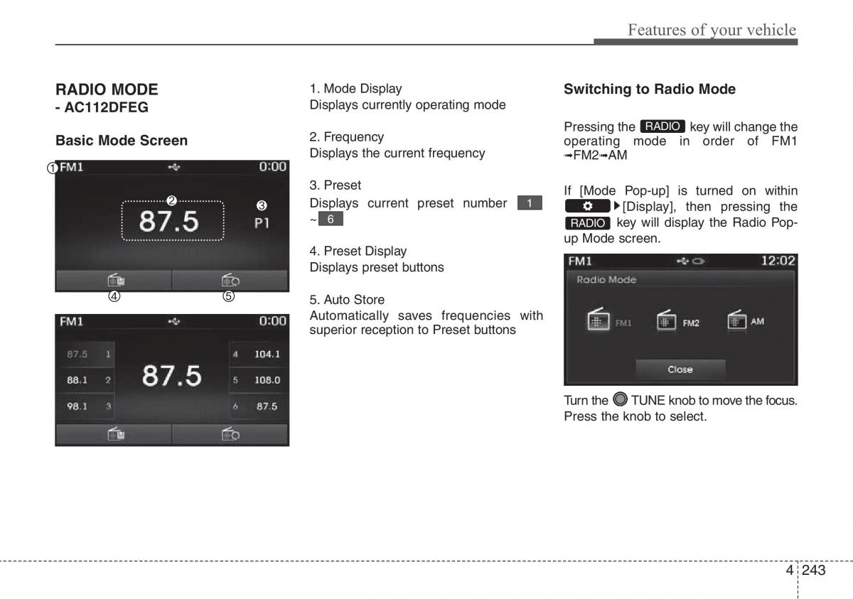 RADIO MODE 1. Mode Display Switching to Radio Mode