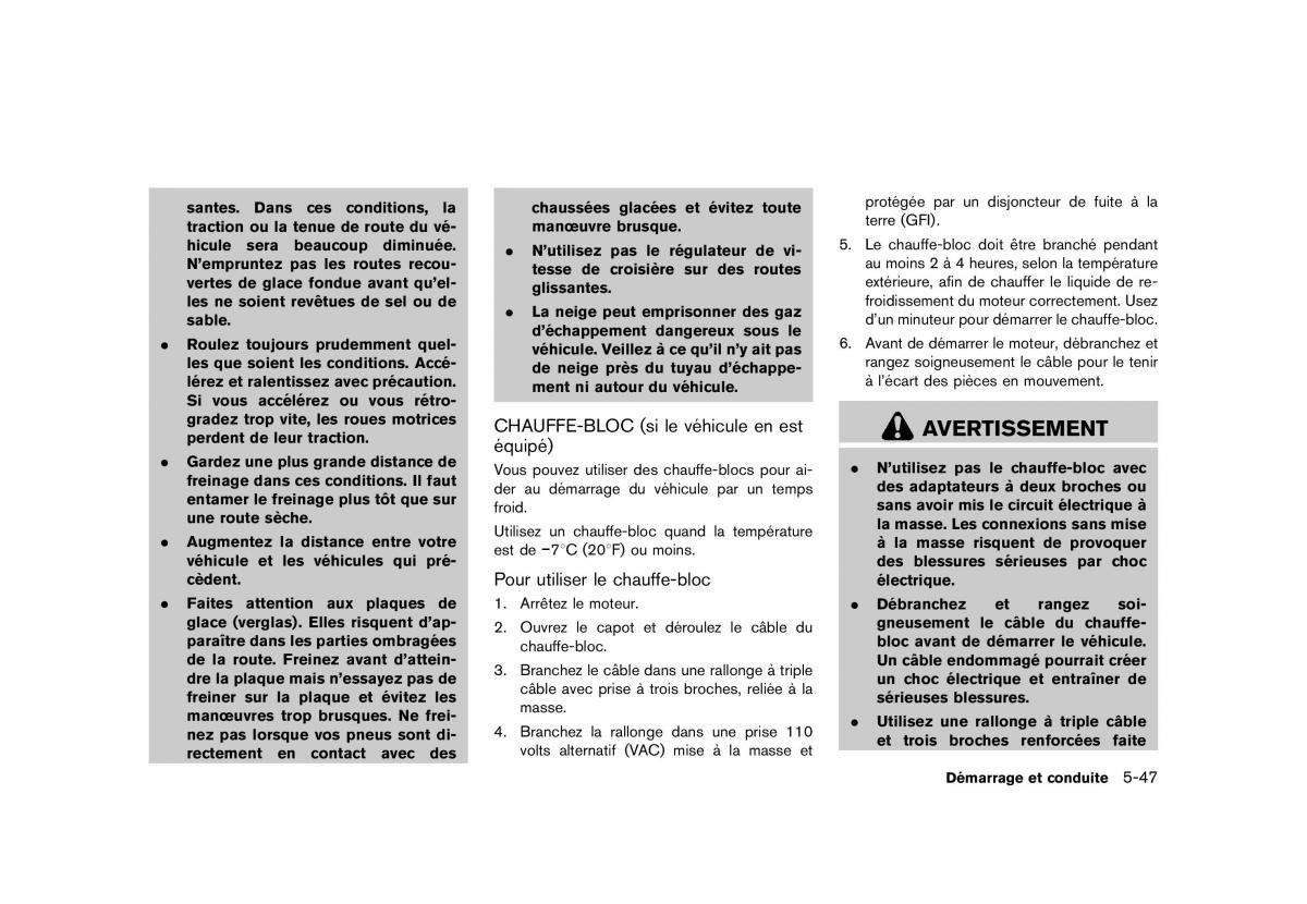 perdent de leur traction. CHAUFFE-BLOC (si le vehicule en est AVERTISSEMENT