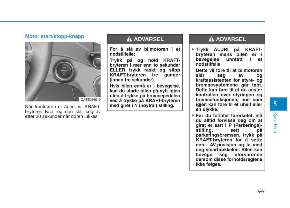 OAEE056019 ved å trykke på KRAFT-bryteren bremsefunksjonen, noe som