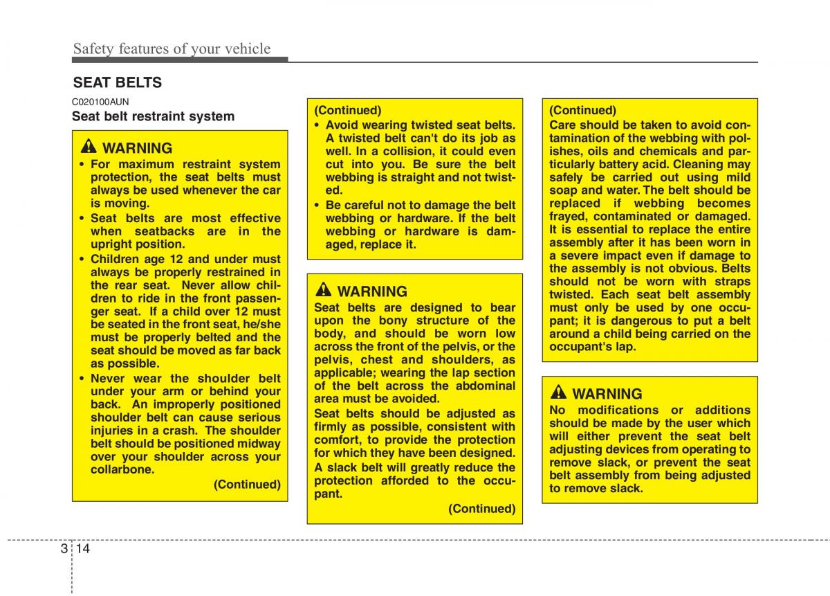 Seat belt restraint system • Avoid wearing twisted seat belts.Care should be taken to avoid con-