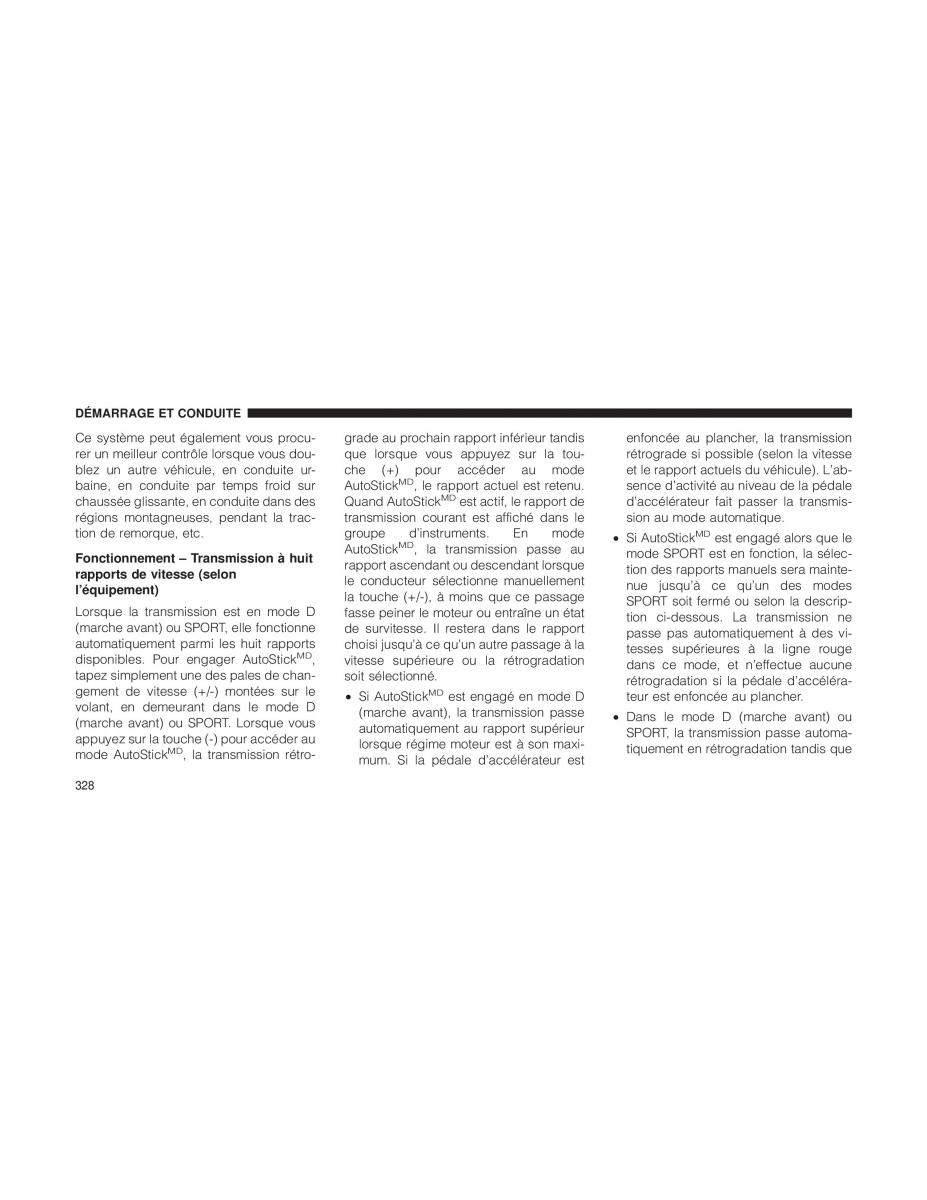 disponibles. Pour engager AutoStick , vitesse supérieure ou la rétrogradation dans ce mode, et n’effectue aucune