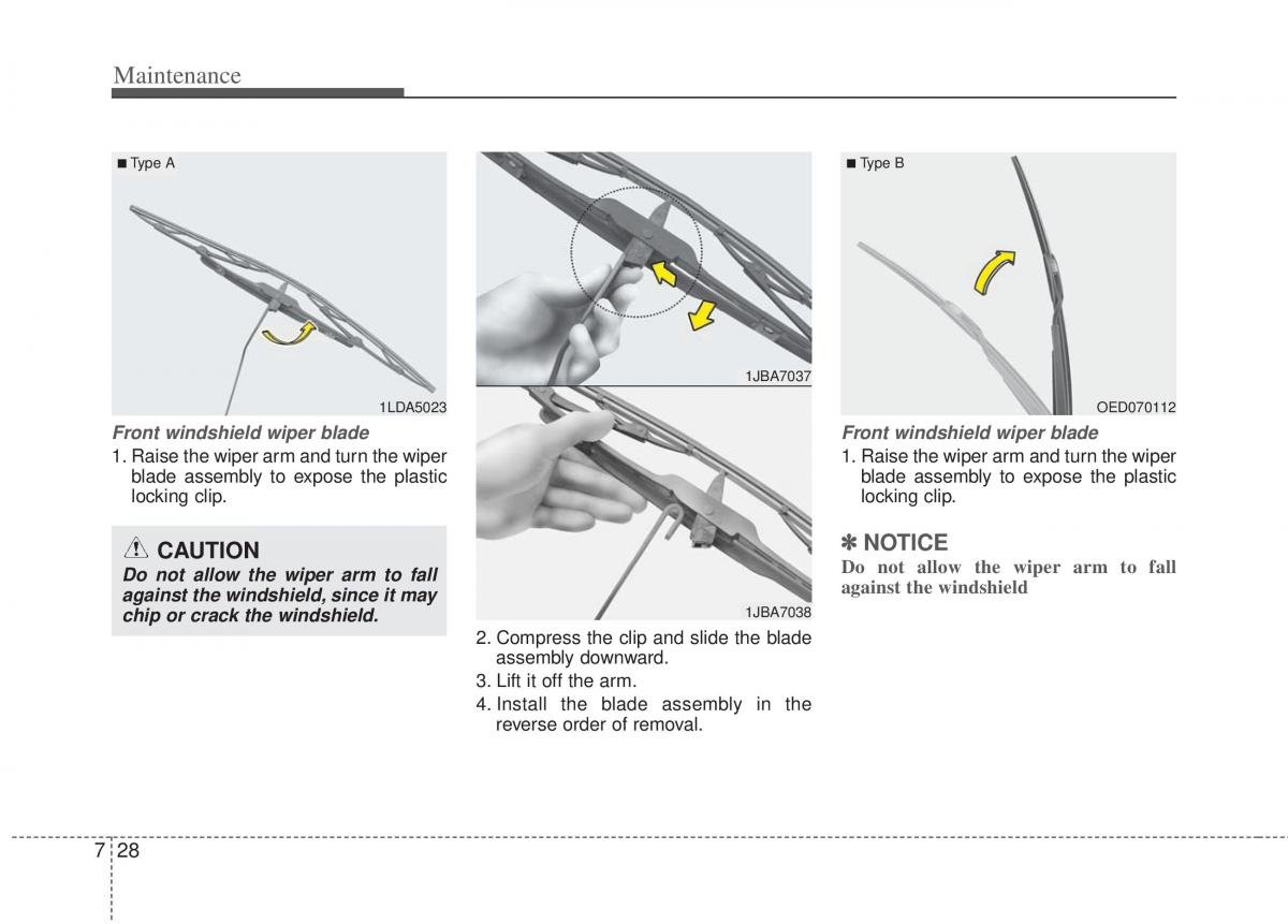 Do not allow the wiper arm to fall Do not allow the wiperarm to fall