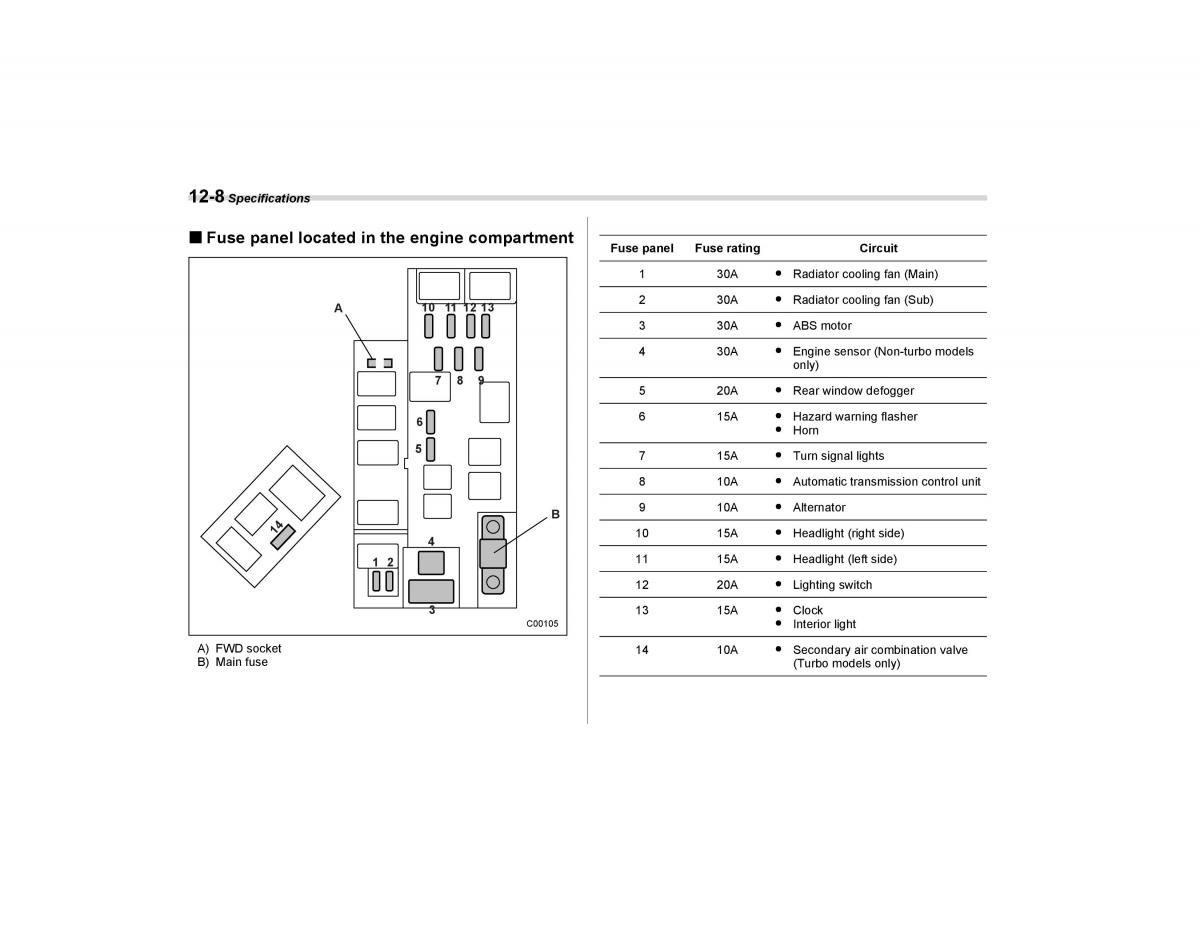 B) Main fuse (Turbo models only)