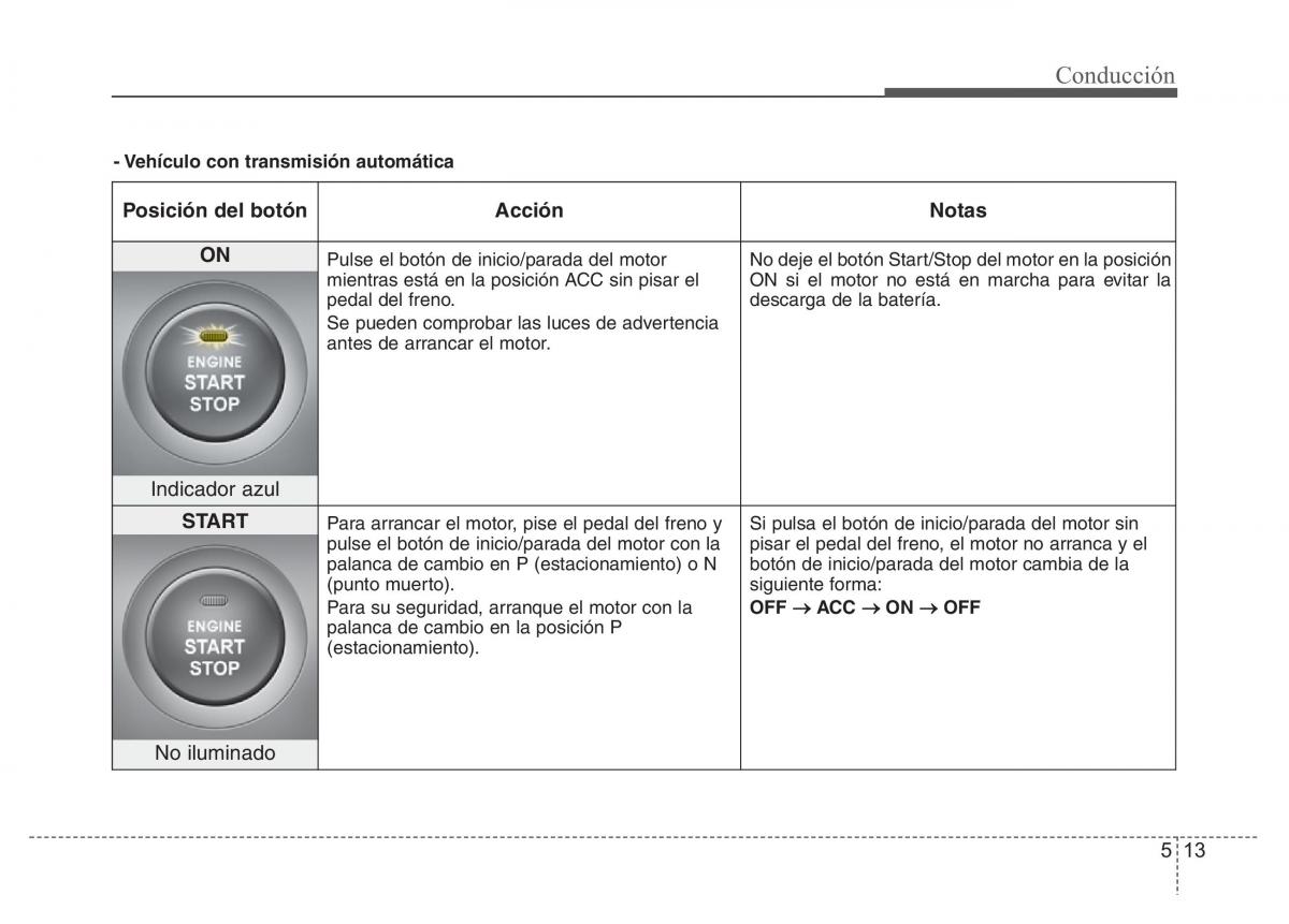 ON Pulse el botón de inicio/parada del motorNo deje el botón Start/Stop del motor en la posición