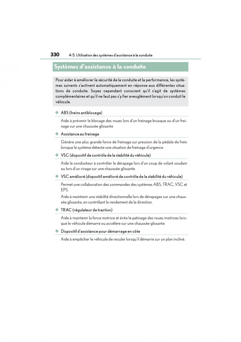 330 4-5. Utilisation des systèmes d’assistance à la conduite