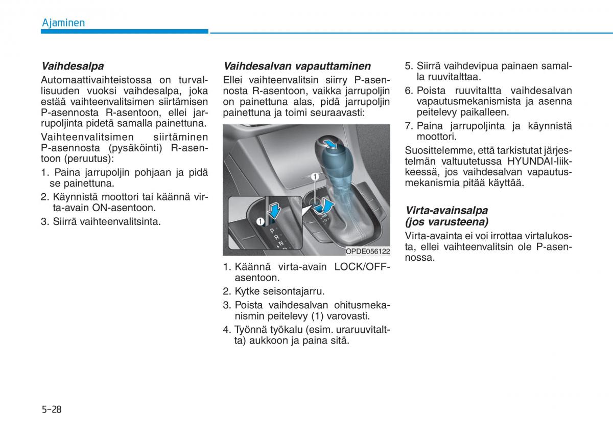 OPDE056122 ta, ellei vaihteenvalitsin ole P-asen-