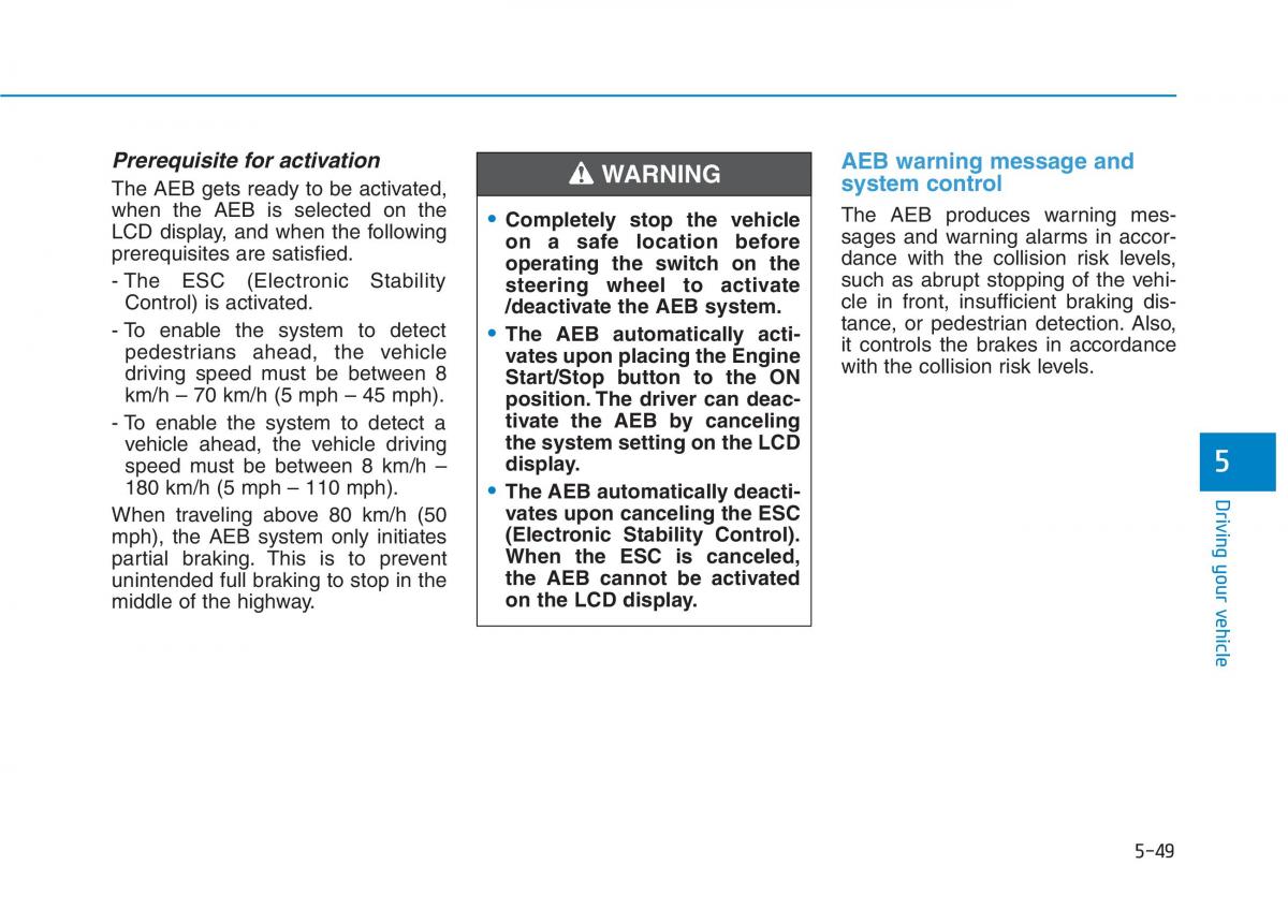 180 km/h (5 mph – 110 mph). The AEB automatically deacti-
