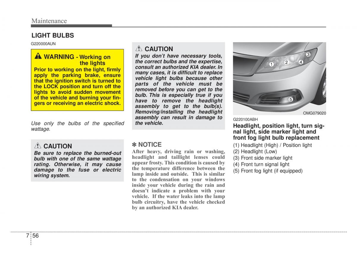 Prior to working on the light, firmlyconsult an authorized KIA dealer. In